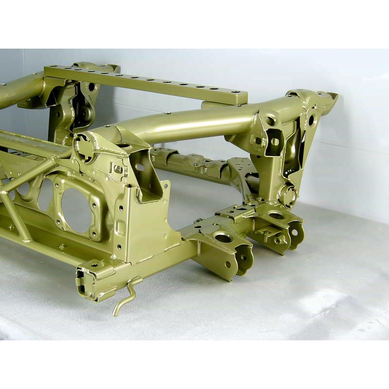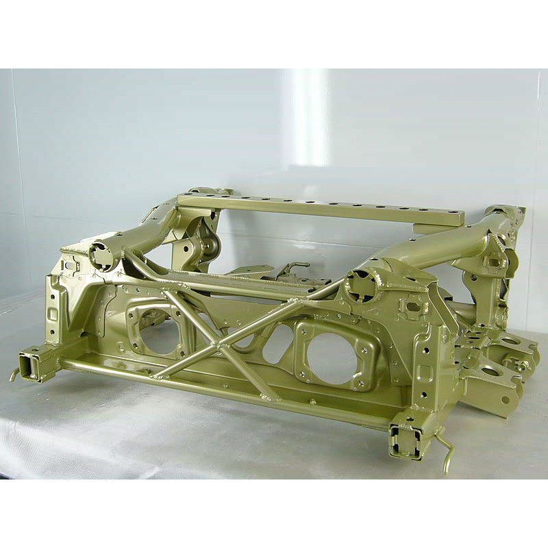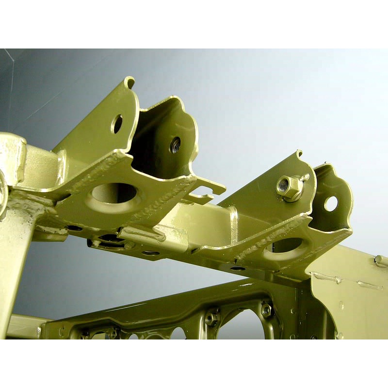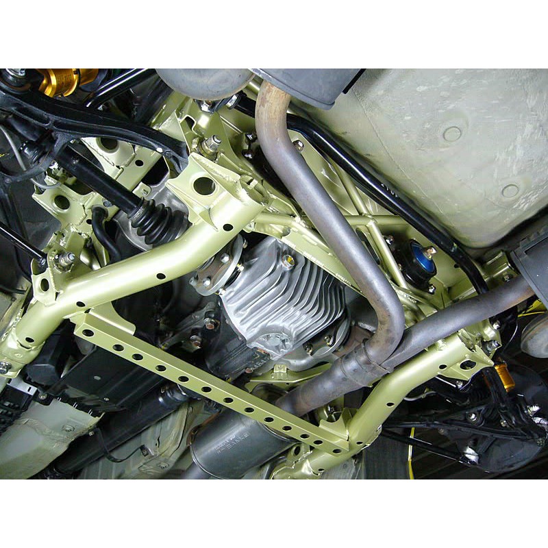 Berceau arrière renforcé. Basé sur un berceau Honda OEM neuf, JUN y rajoute des plaques de renforts, des barres et reprend des soudures pour augmenter la rigidité.