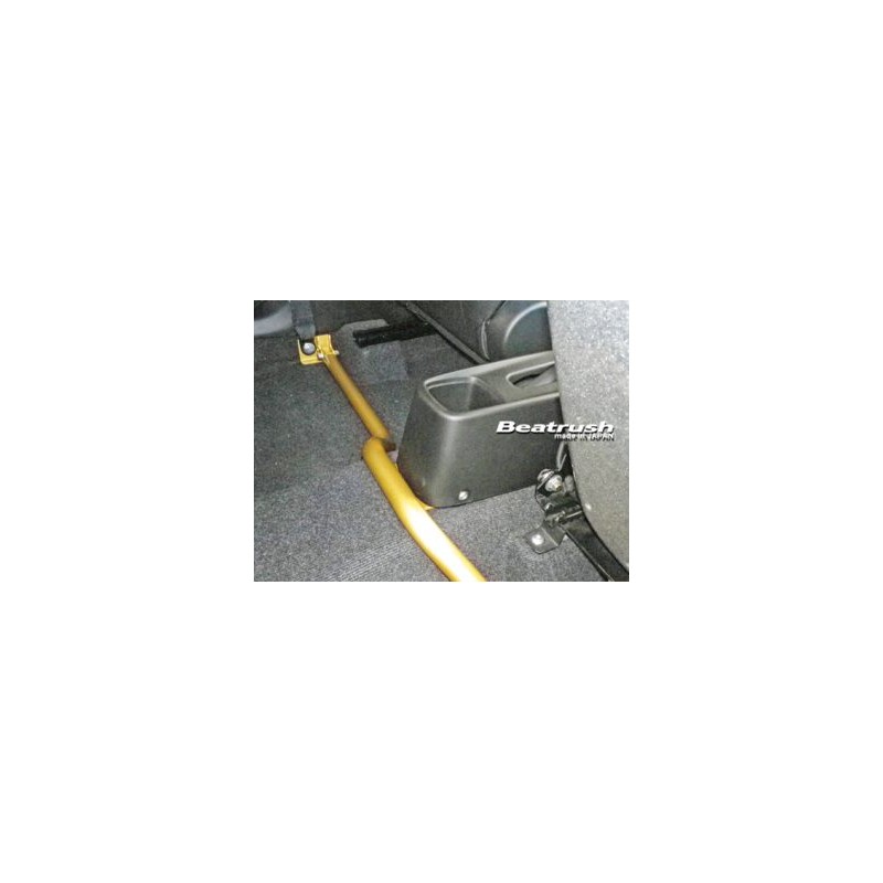 La barre de performance Beat Rush Floor relie la partie inférieure des montants B gauche et droit (boulons de fixation de la ceinture de sécurité) et la partie centrale du plancher sur une ligne horizontale avec un arbre en aluminium de φ32 mm pour augmenter la rigidité du corps du châssis de Swift Sport.