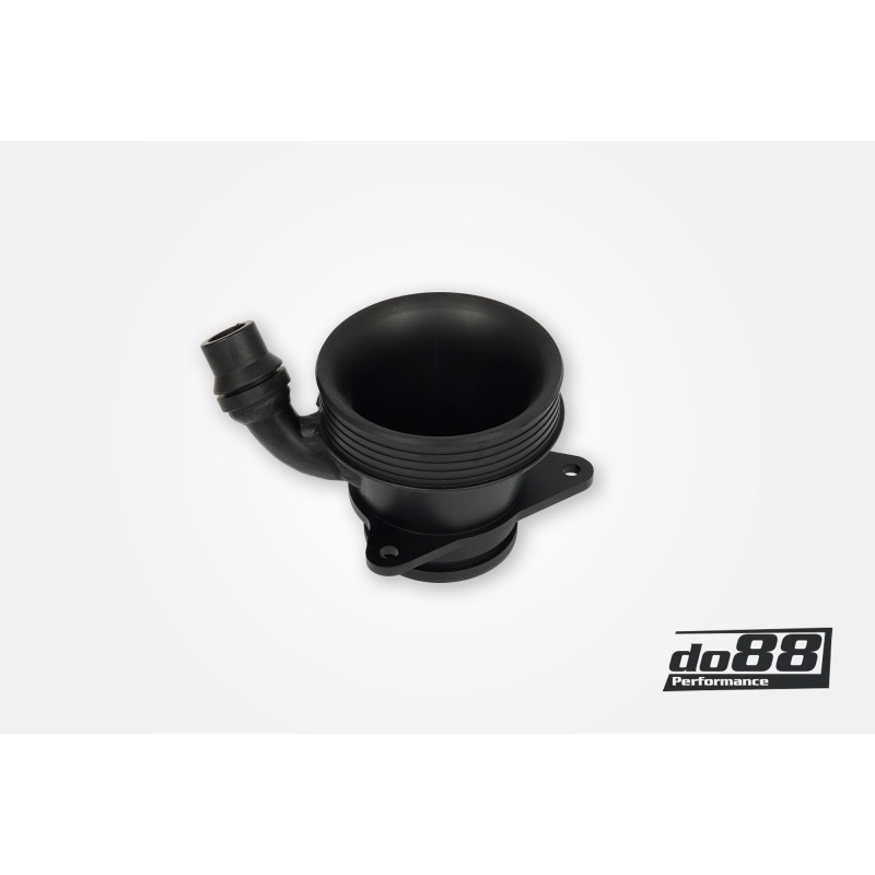 Le système est disponible en plusieurs configurations. Il est compatible avec la tuyauterie d'entrée de turbo OE - mais aussi avec les entrées de turbo usinées CNC de do88. Nos entrées de turbo sont disponibles en deux versions différentes, pour le turbo OE ou le turbo hybride Pure 800. Les deux ont une énorme connexion de durite de 89mm (3,5") vers la tuyauterie d'entrée et elles possèdent un rayon optimisé pour le débit soigneusement calculé qui améliore considérablement le flux d'air. L'ajout de la tuyauterie d'entrée de turbo do88 élimine efficacement tous les goulets d'étranglement avant le turbo pour éviter toute surcompression, même à des niveaux de puissance élevés !